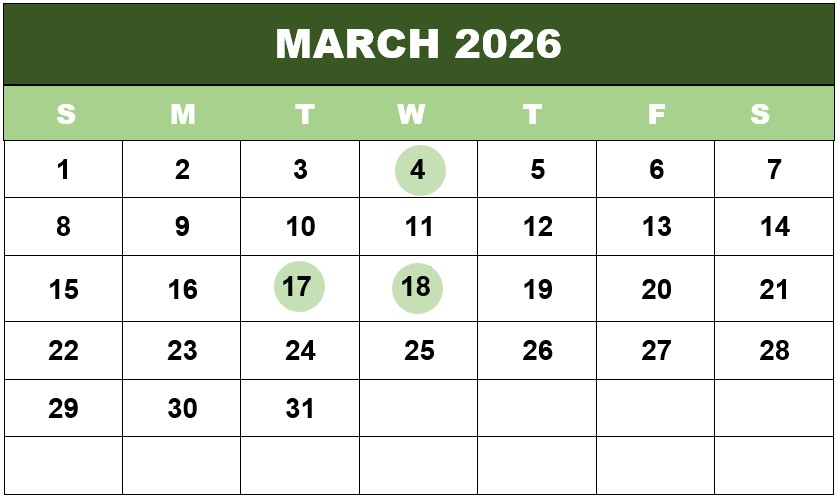 MARCH 2026 CALENDAR